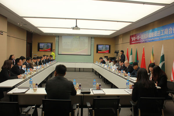 2016年4月27日,巴基斯坦山東商會考察團(tuán)“參與一帶一路國家戰(zhàn)略促進(jìn)工商合作”座談會,在聯(lián)橋國際大廈4樓會議中心舉行。也門全權(quán)大使艾哈邁德、坦桑尼亞全權(quán)公使喬治·馬農(nóng)紀(jì)及夫人、津巴布韋經(jīng)濟(jì)商務(wù)參贊麥克斯威爾等國外貴賓,巴基斯坦山東商會會長程曉耘、巴基斯坦山東商會威海分會會長蔡曉萌等領(lǐng)導(dǎo),以及名流集團(tuán)、鹽業(yè)集團(tuán)、藍(lán)星集團(tuán)、魏橋紡織、威建集團(tuán)等威海工商企業(yè)界的各位領(lǐng)導(dǎo)參加座談。會議由巴基斯坦(中國)山東商會主辦,聯(lián)橋集團(tuán)、名流集團(tuán)協(xié)辦。威海市工商聯(lián)常委、聯(lián)橋集團(tuán)董事長慕镕鍵主持會議。