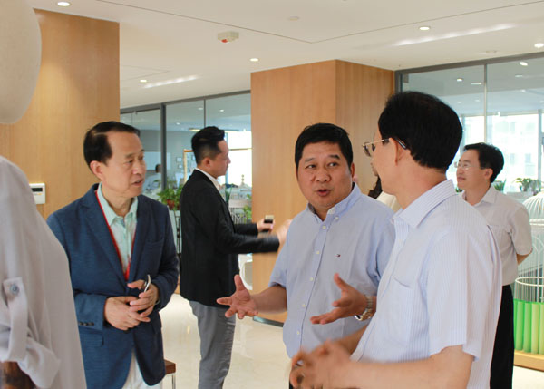 慕镕鍵董事長陪同張耀平一行參觀了聯(lián)橋集團(tuán)總部,并對公司的發(fā)展情況進(jìn)行了介紹。張耀平對聯(lián)橋集團(tuán)多年以來穩(wěn)扎穩(wěn)打、穩(wěn)健發(fā)展表示肯定,對聯(lián)橋集團(tuán)以“感恩 責(zé)任”為核心價值觀的文化體系,建設(shè)幸福企業(yè)、誠信立企的理念表示贊賞。慕镕鍵董事長感謝農(nóng)業(yè)銀行多年以來的信任和支持,希望雙方可以進(jìn)一步加強(qiáng)合作,實(shí)現(xiàn)全面互利共贏。
