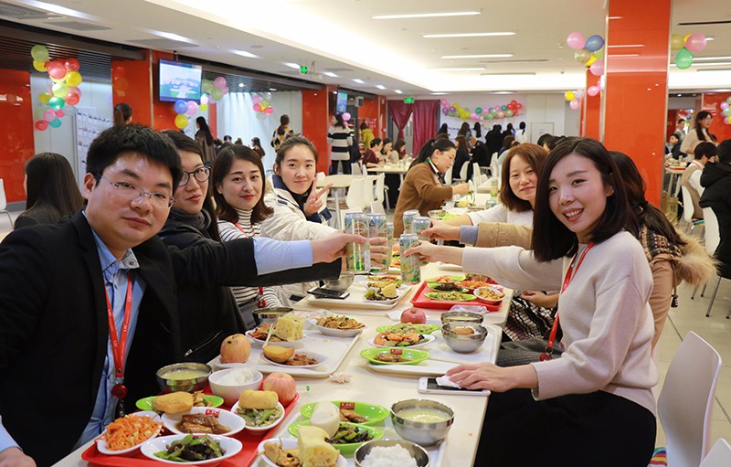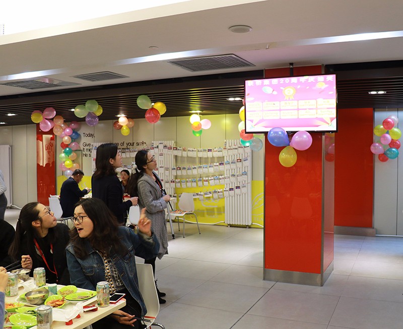 中午時(shí)分,大家走進(jìn)餐廳,彩球環(huán)繞,溫馨浪漫的氛圍縈繞身邊。直徑一米多長(zhǎng)的精美生日蛋糕點(diǎn)綴著各種水果、鮮花、巧克力,色彩繽紛,醒目的“聯(lián)橋集團(tuán)20周年”的字樣,更彰顯著歡愉的氣氛。