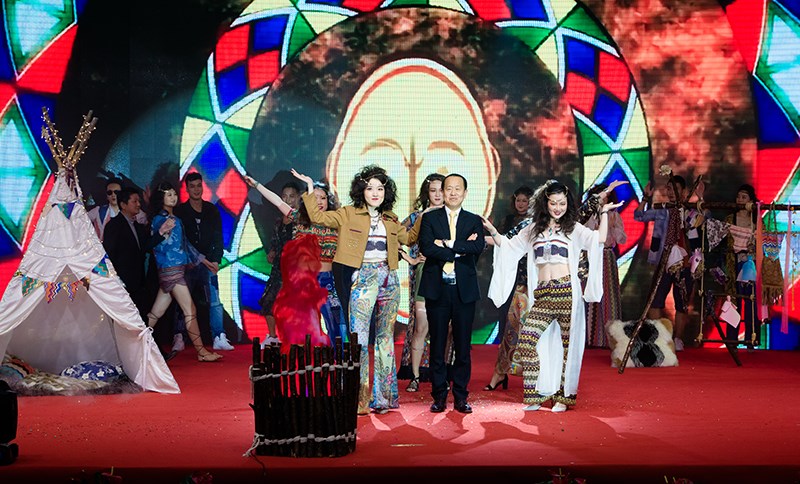 全場的最高燃點,出現(xiàn)在時尚秀《吉普賽女郎》中,原始森林、草原、篝火、帳篷的場景,讓人置身奇幻異域,身著波西米亞風(fēng)格服裝的聯(lián)橋模特們,在絢麗的燈光中,踏著節(jié)奏的鼓點,時尚的步伐,一一出場。超高的顏值,炫酷的造型,令人目不暇接,盡情共享聯(lián)橋時尚。當(dāng)觀眾們在美輪美奐中沉醉時,慕镕鍵董事長在聚光燈的照耀下,在萬眾矚目中,在模特的擁簇下閃亮登場,盡顯聯(lián)橋時尚總引領(lǐng)者的奪目風(fēng)采。緊接著,他帶領(lǐng)全體模特跳起充滿異域風(fēng)情的舞蹈,輕松的節(jié)奏,歡快的舞步,引發(fā)全場陣陣尖叫,齊聲喝彩。此時意猶未盡,又邀請日本貴賓上場,與全場觀眾一起搖擺,掀起了晚會最高潮。