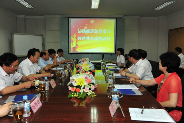 聯(lián)橋集團黨委副書記、工會主席宋威麗向趙熙殿副書記一行介紹了集團公司和工會工作的基本情況,著重匯報了聯(lián)橋集團在“弘揚感恩彰顯責任,共建共享幸福聯(lián)橋”工作中的舉措和體會。