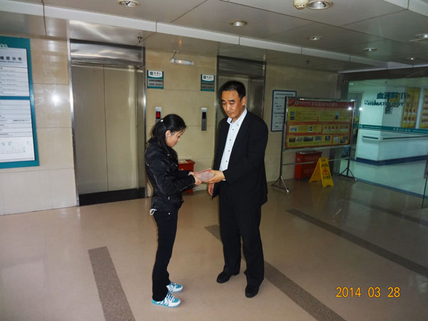 2014年3月8日,集團(tuán)公司副總經(jīng)理于福杰帶著聯(lián)橋 人的無(wú)限愛(ài)心,專(zhuān)程趕往湖北,來(lái)到吳小歡接受治療的武漢協(xié)和醫(yī)院,親切看望慰問(wèn)吳小歡,并將第一筆捐助款6萬(wàn)余元送到了吳小歡家人手中,繼續(xù)接受醫(yī)院化療,此時(shí)病情相對(duì)穩(wěn)定。