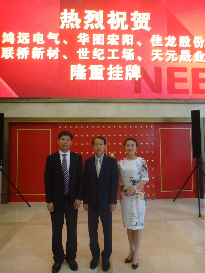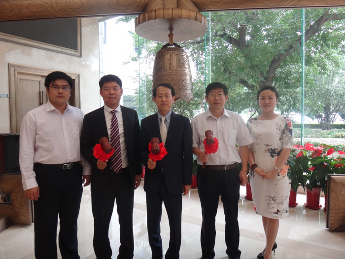 8月22日,在北京舉行的“新三板”掛牌儀式上,伴隨著喜慶熱烈的掌聲,聯(lián)橋集團(tuán)董事長慕镕鍵,聯(lián)橋集團(tuán)董事、聯(lián)橋新材總經(jīng)理慕衛(wèi)波,威海高技術(shù)產(chǎn)業(yè)開發(fā)區(qū)經(jīng)濟(jì)發(fā)展局局長田曾福共同敲響開市寶鐘,標(biāo)志著集團(tuán)公司進(jìn)入多層次資本市場實(shí)現(xiàn)新的突破。出席掛牌儀式的還有威海高區(qū)金融辦主任周芊,上海證券公司經(jīng)理馬奕彤,聯(lián)橋新材副總經(jīng)理李曉妹等。