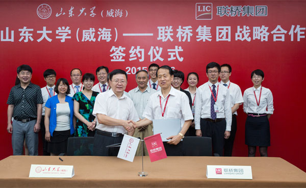 2015年7月16日,聯(lián)橋集團與山東大學(威海)戰(zhàn)略合作簽約儀式在聯(lián)橋集團舉行。山東大學(威海)黨委副書記趙玉璞和聯(lián)橋集團黨委書記、董事長慕镕鍵代表雙方簽署了戰(zhàn)略合作協(xié)議。全國政協(xié)常委、中國社會科學院學部委員、山東大學東北亞研究中心理事長張?zhí)N嶺教授、山東大學(威海)合作發(fā)展處副處長劉曉軍、山東大學(威海)科研處副處長吳玉閣,聯(lián)橋集團副總經(jīng)理于福杰、副總經(jīng)理慕雙舉、聯(lián)橋新材料副總經(jīng)理李曉妹等領導出席儀式,簽約儀式由聯(lián)橋集團黨委副書記宋威麗主持。
